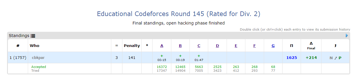 | [Codeforces] Round 862 Div.2 후기 (0) | 2023.04.03 |