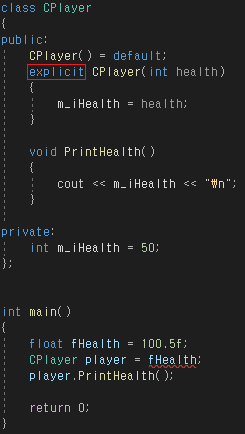 explicit 키워드를 통해 자동으로 형변환 되는 것을 막을 수 있다.