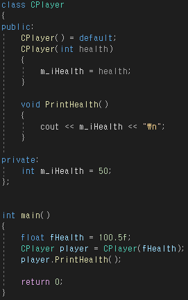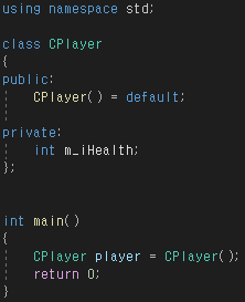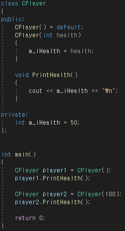 default를 통해 명시적으로 디폴트생성자를 사용할 수 있다.