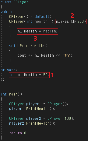 멤버변수에 미리 정의된 값이 초기화리스트의 값으로 덮어 씌워진다.