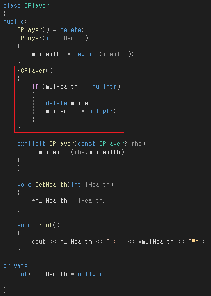 소멸자에서 메모리 할당을 해제하면