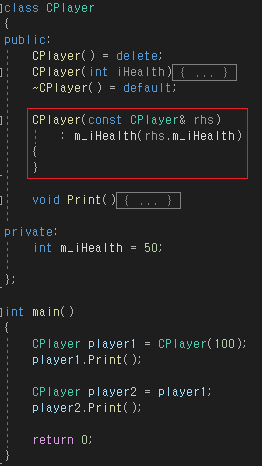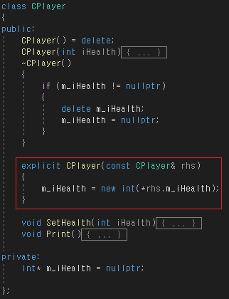 복사생성 시 컴파일 에러가 난다.