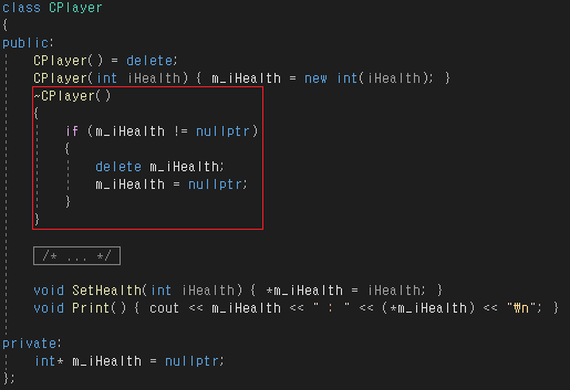 소멸자에서 메모리 할당을 해제하면