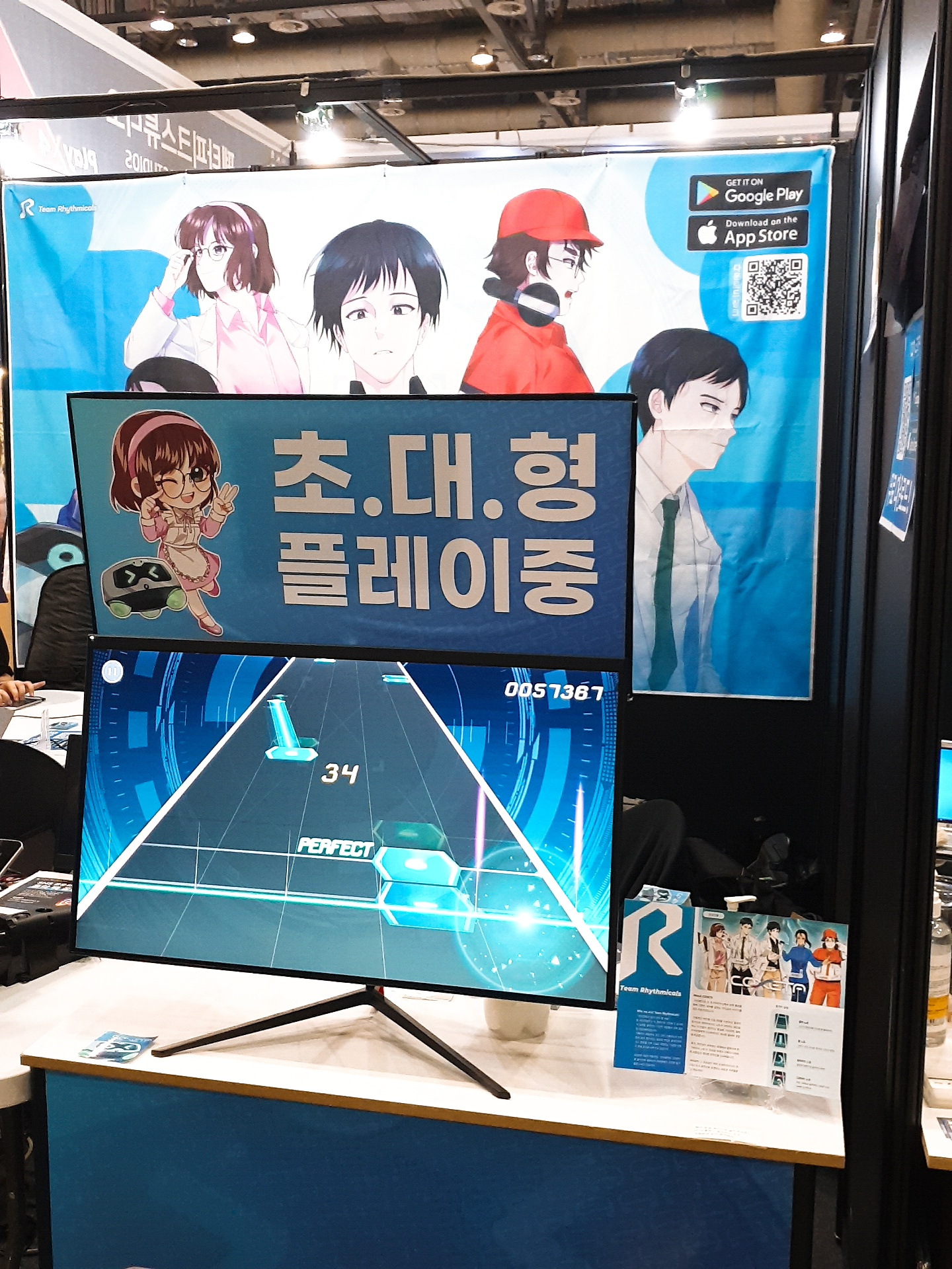 리듬게임이 재밌어 보여서 줄을 서서 대기하면서 플레이를 구경