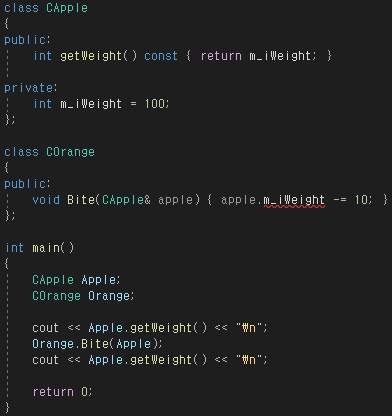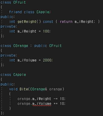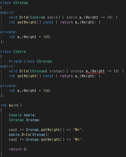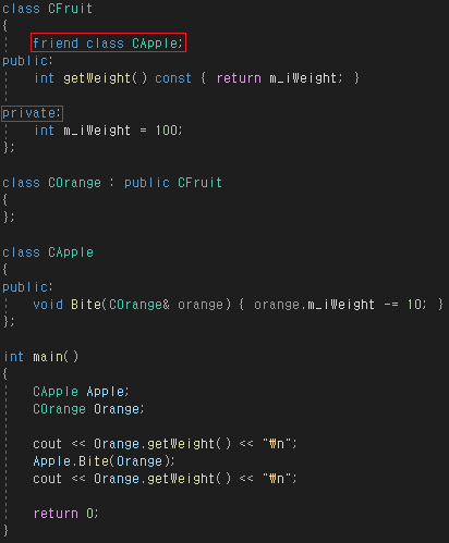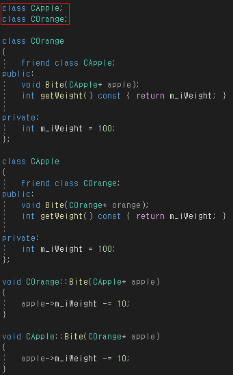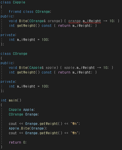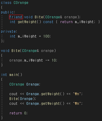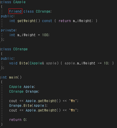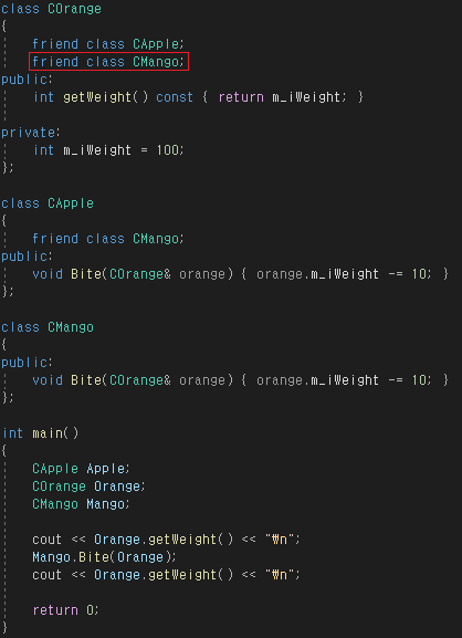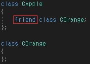 위와 같이 클래스 앞에 friend를 붙여주면 된다.