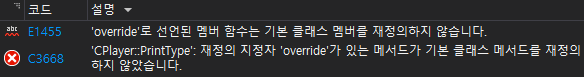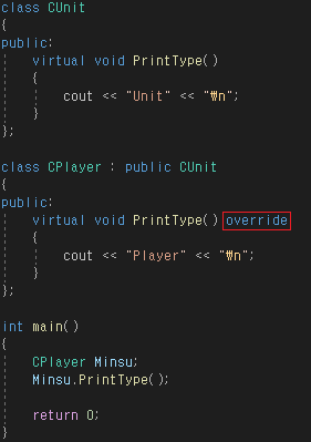 override 키워드를 사용했을 경우에는