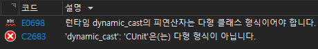 virtual 키워드가 없을 경우 dynamic_cast 불가능