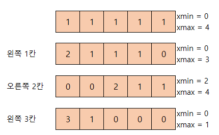 x==xmax일경우 b - (xmax - xmin - 1) - xcnt