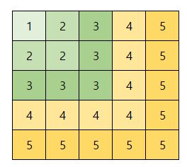 이때 좌표가 (y, x)일 경우 해당 좌표의 값은 Math.Max(y, x) + 1 이되게 된다.