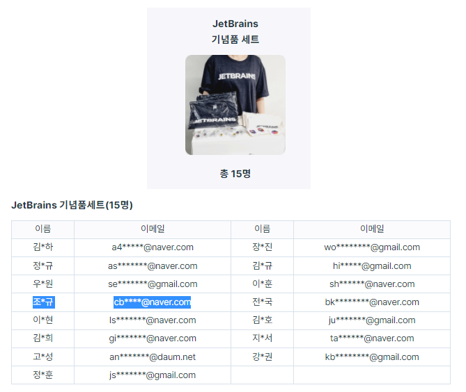 운 좋게 15명 뽑는 JetBrains 기념품 세트에 당첨되었다~